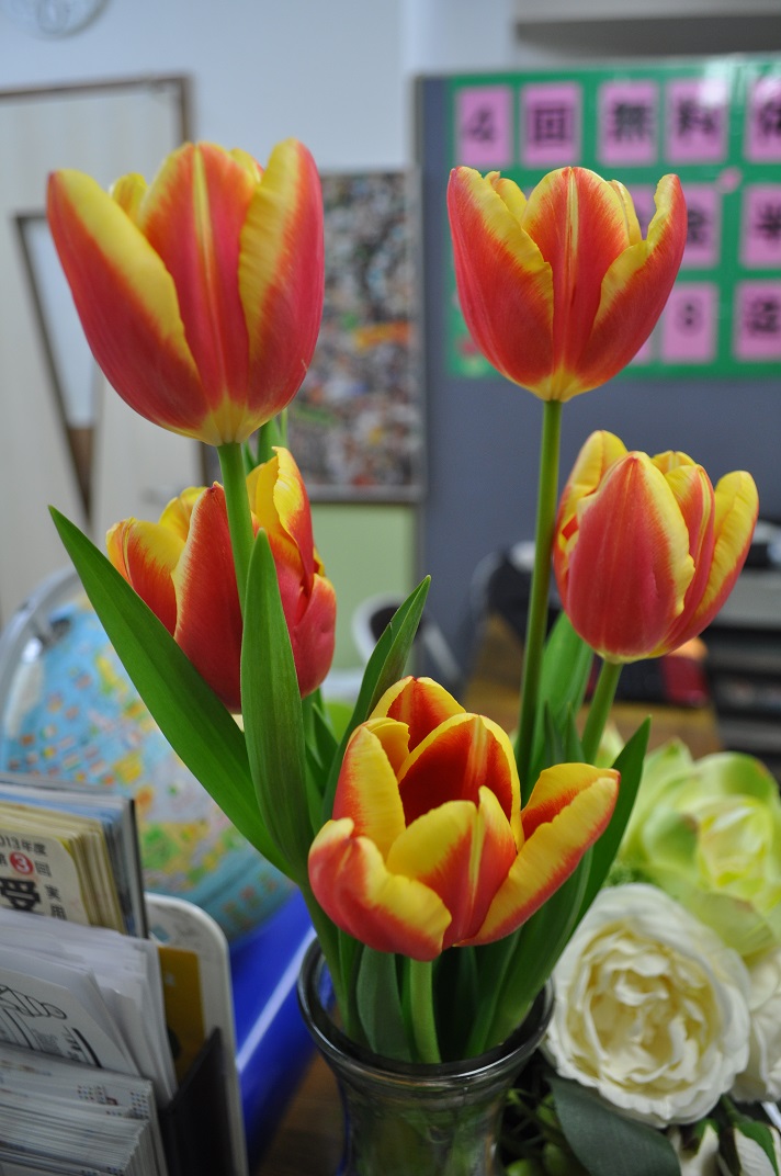 みなさん、こんにちは。 播本です。 インフルエンザが大流行中ですね。 今日のニュースにありましたが、患者数が前週の倍になり 33都道府県で「警報」がでたそうです。 感染を防ぐため、手洗いやマスクの着用を徹底しましょう。 HARIOに来た時も忘れずに♪ 特に受験者の皆さんやご家族は気を付けてくださいね。 来週は私立高校の受験日ですから。 ところで、今週から受付に「チューリップ」を飾りました。 まだ寒いですが春の近づきを感じます。 やっぱり春がいい。早く春よこい! 今週の火曜日は児童英検の対策授業が…