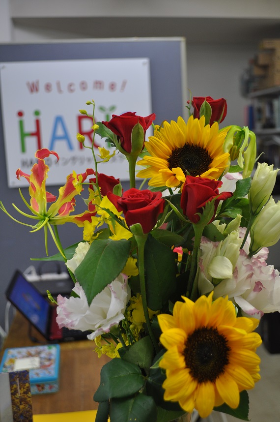 そして最後に1周年記念のお花を播本先生にお渡ししました![]()