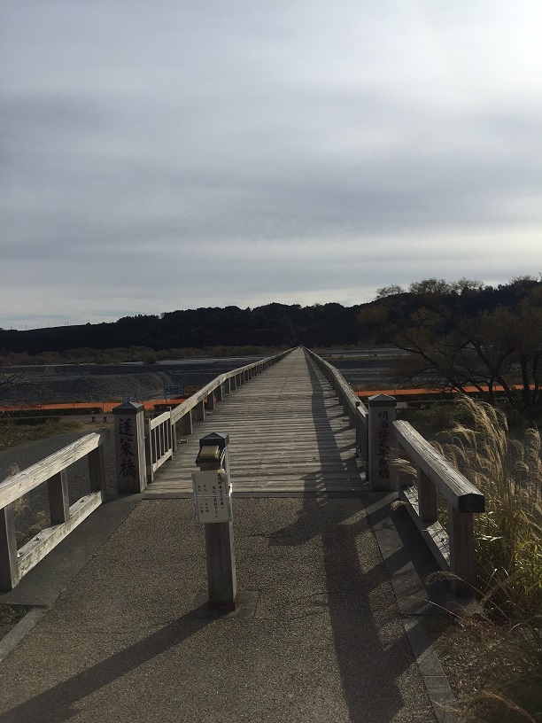 How’s life treating you at the moment? Winter has definitely begun. There have been lots of cold, sunny days in the past week or so. Last Sunday was one of them. I decided to go for a drive and see some of the sightseeing spots of Shizuoka. First, I went to the Horai Bridge. Apparently, it’s the longest wooden footbridge in the world, at nearly 1km long. It spans the Oi river. Walking across it you get a lovely view of the sea, Mt Fuji and the countryside. I also went to Kakegawa and saw its castle. It’s important historically because of its connection to the Tokugawa Shogunate. Outside the castle, I was greeted by some ninjas and samurai. They spoke to me in English. I took my photo with them. It was a fun day and I recommend going to both the Horai Bridge and Kakegawa Castle. I’m looking for other interesting places to visit around Shizuoka. Do you know any?